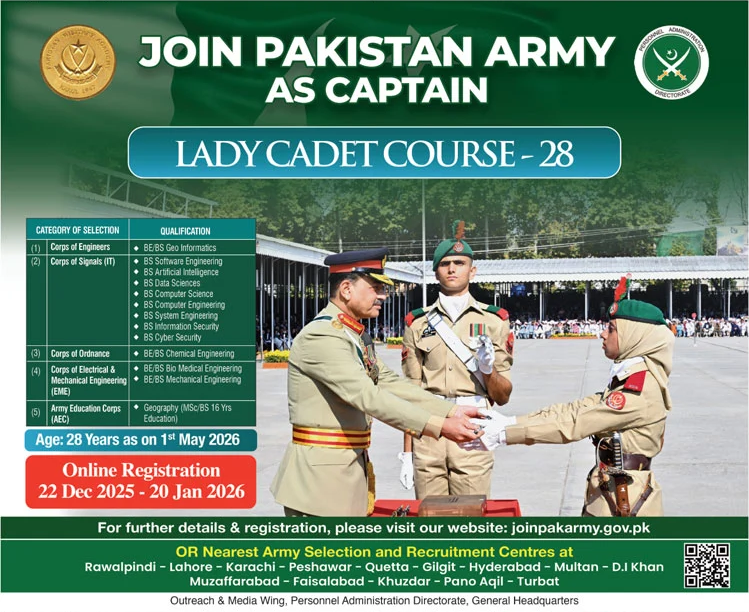 Candidates once rejected by ISSB for Pakistan Miltary Academy/Equivalent courses or once rejected in Post Graduate entry 1 x chance (validity limited for one year and for two consecutive courses of that services).