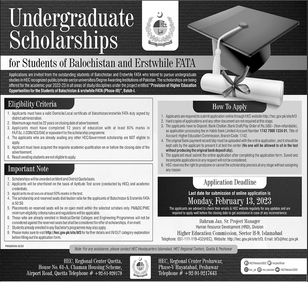 HEC Undergraduate Scholarships for Balochistan and FATA |