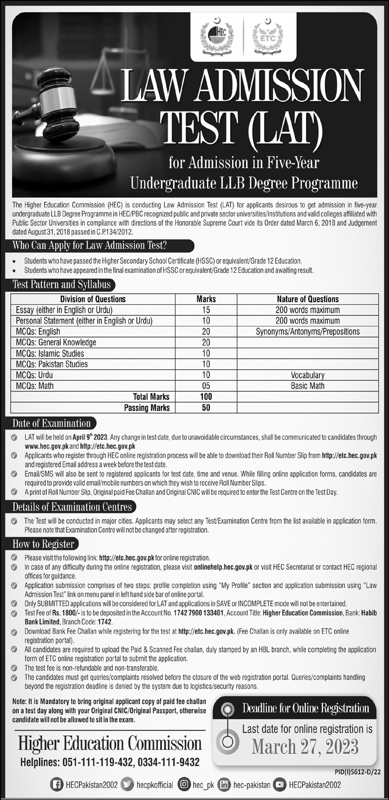 HEC LAW Admission Test (LAT) |