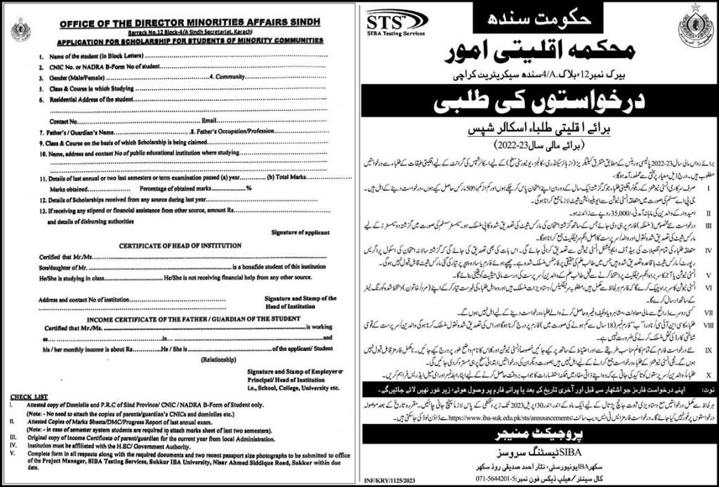 اقلیتی طلبا اسکالر شپ، حکومت سندھ |