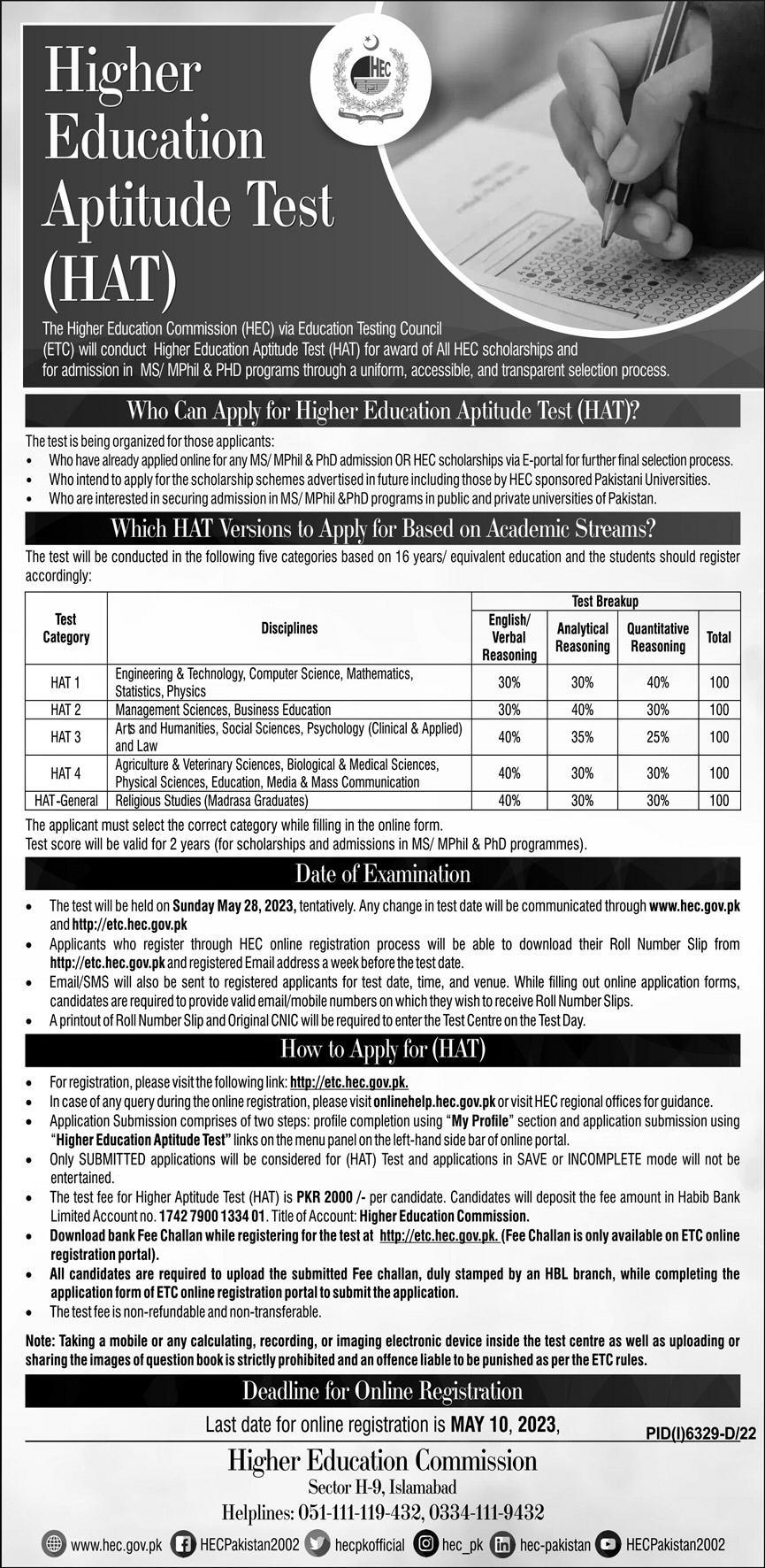 Higher Education Aptitude Test (HAT) |