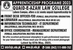 Quaid-e-Azam Law College (Apprenticeship Program 2023) |