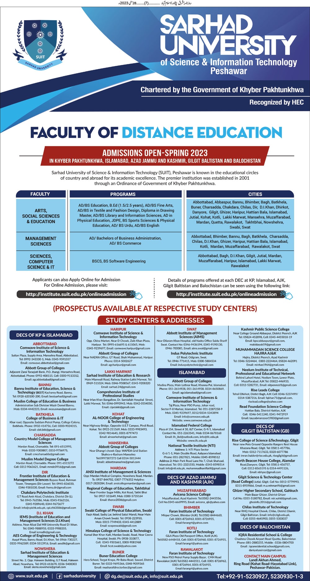 Sarhad University of Science & Information Technology (SUIT), Peshawar |