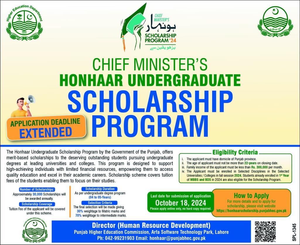 Chief Minister Honhaar Undergraduate Scholarship Program 2024 |