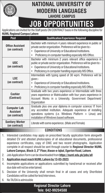 NUML (Karachi & Lahore Campus)