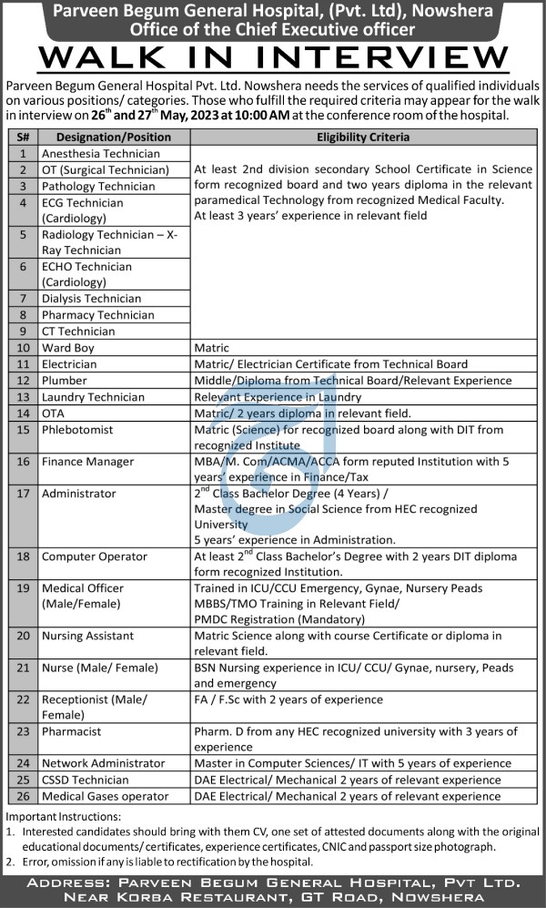 Parveen Begum General Hospital Nowshera