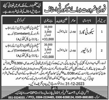 Security Staff Required (All Pakistan)