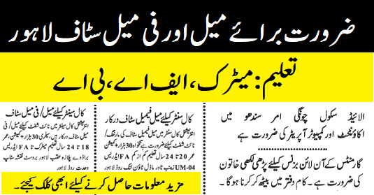 Private Jobs in Lahore