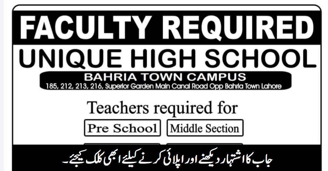 Unique High School Bahria Town Campus Lahore 👉 Apply Now