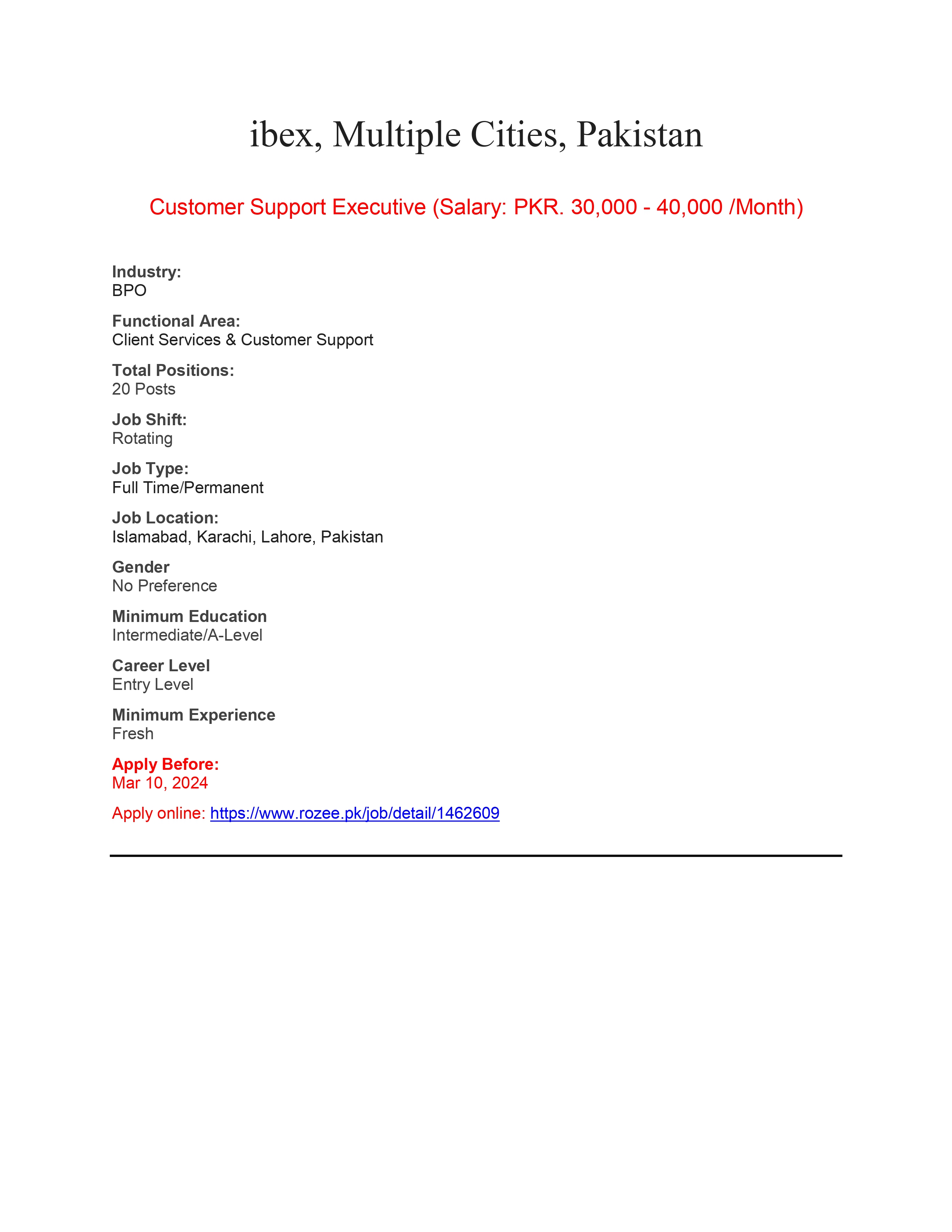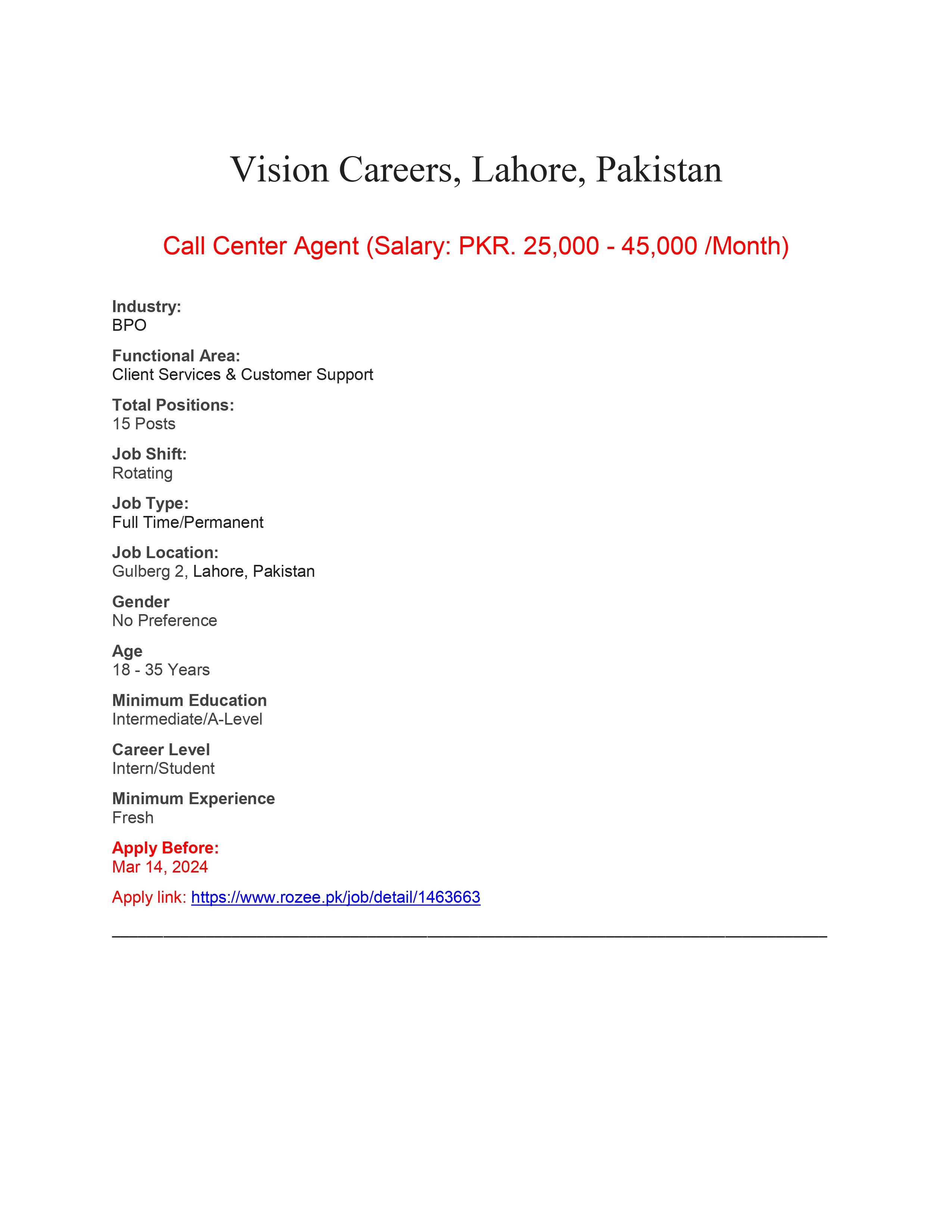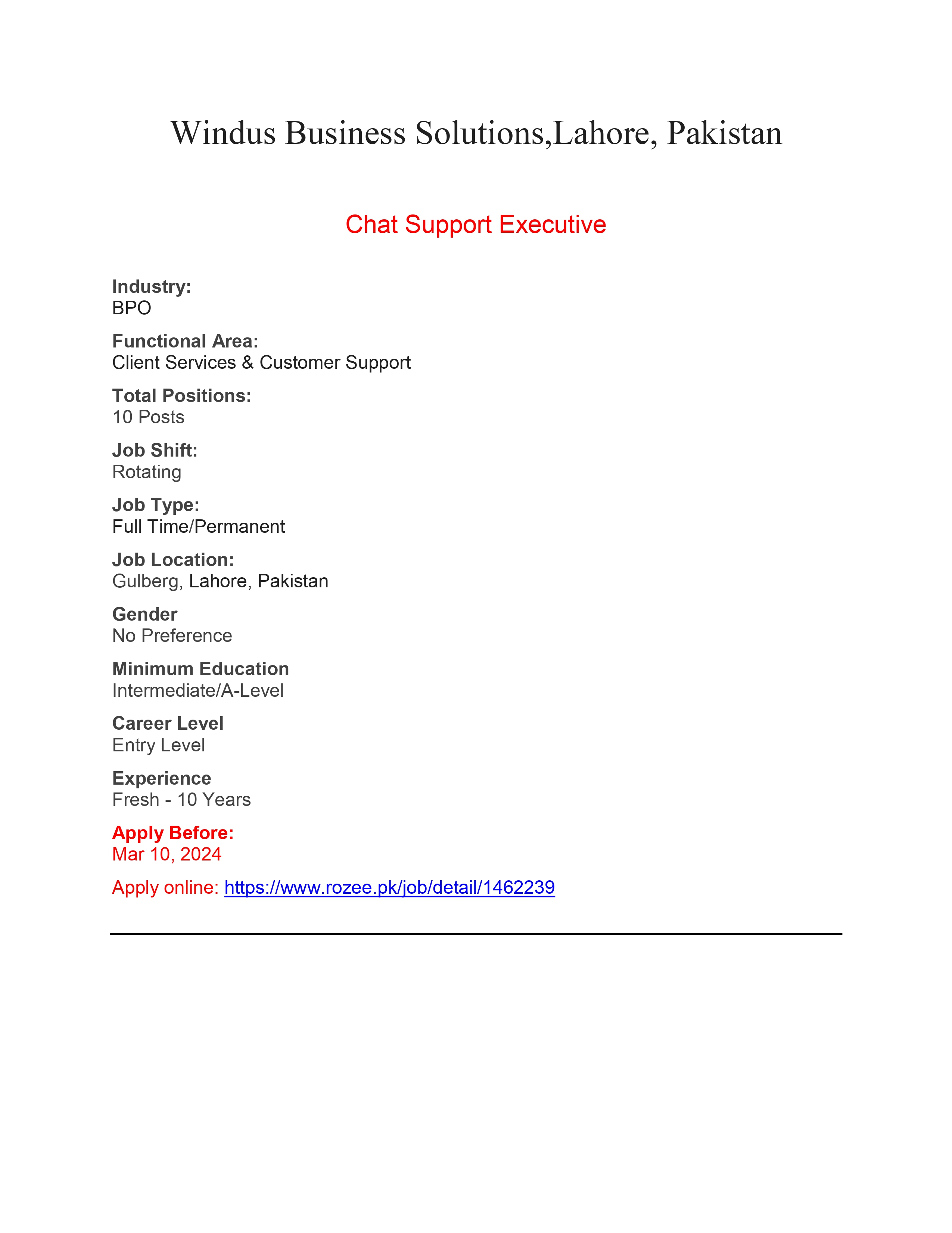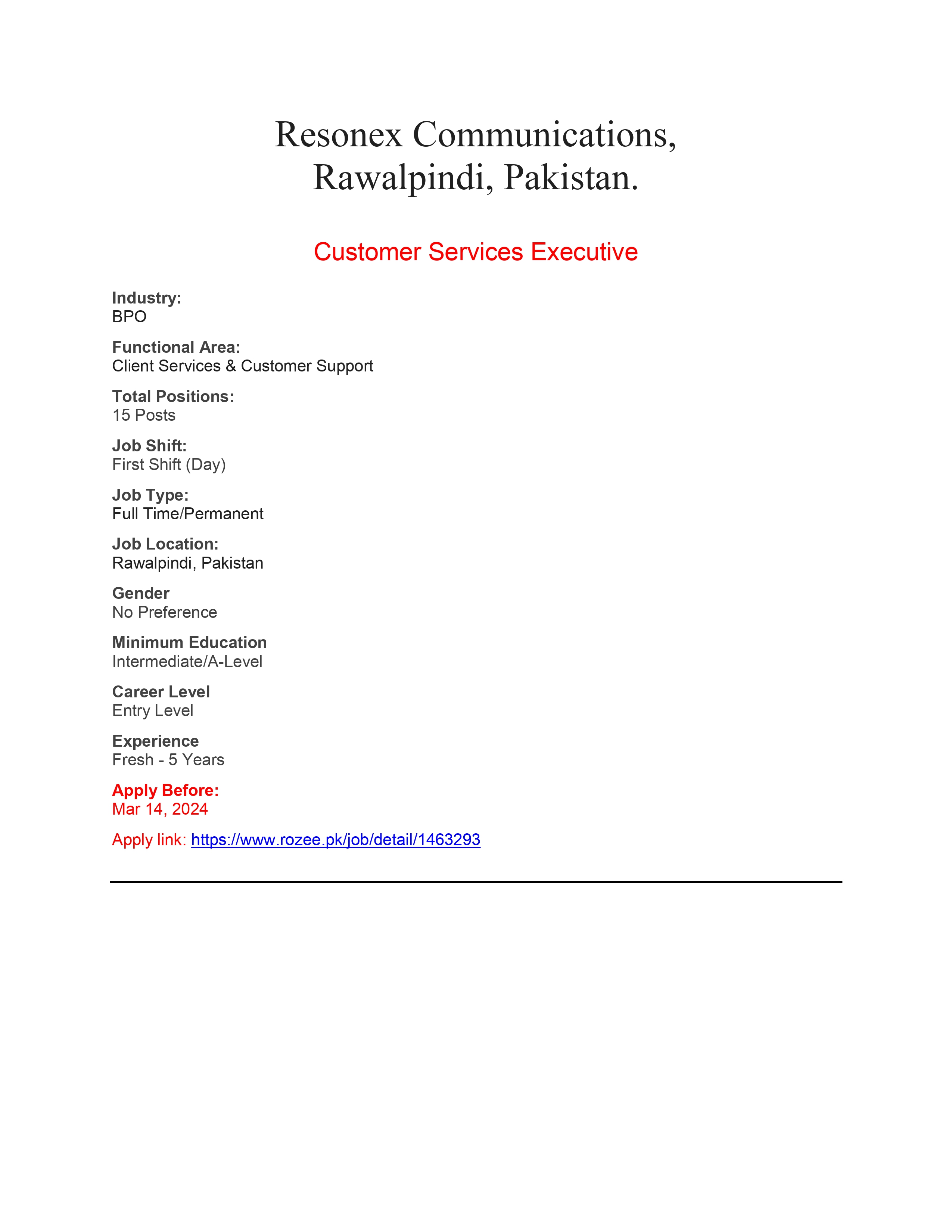 Interested Candidates should apply through Rozee.pk .