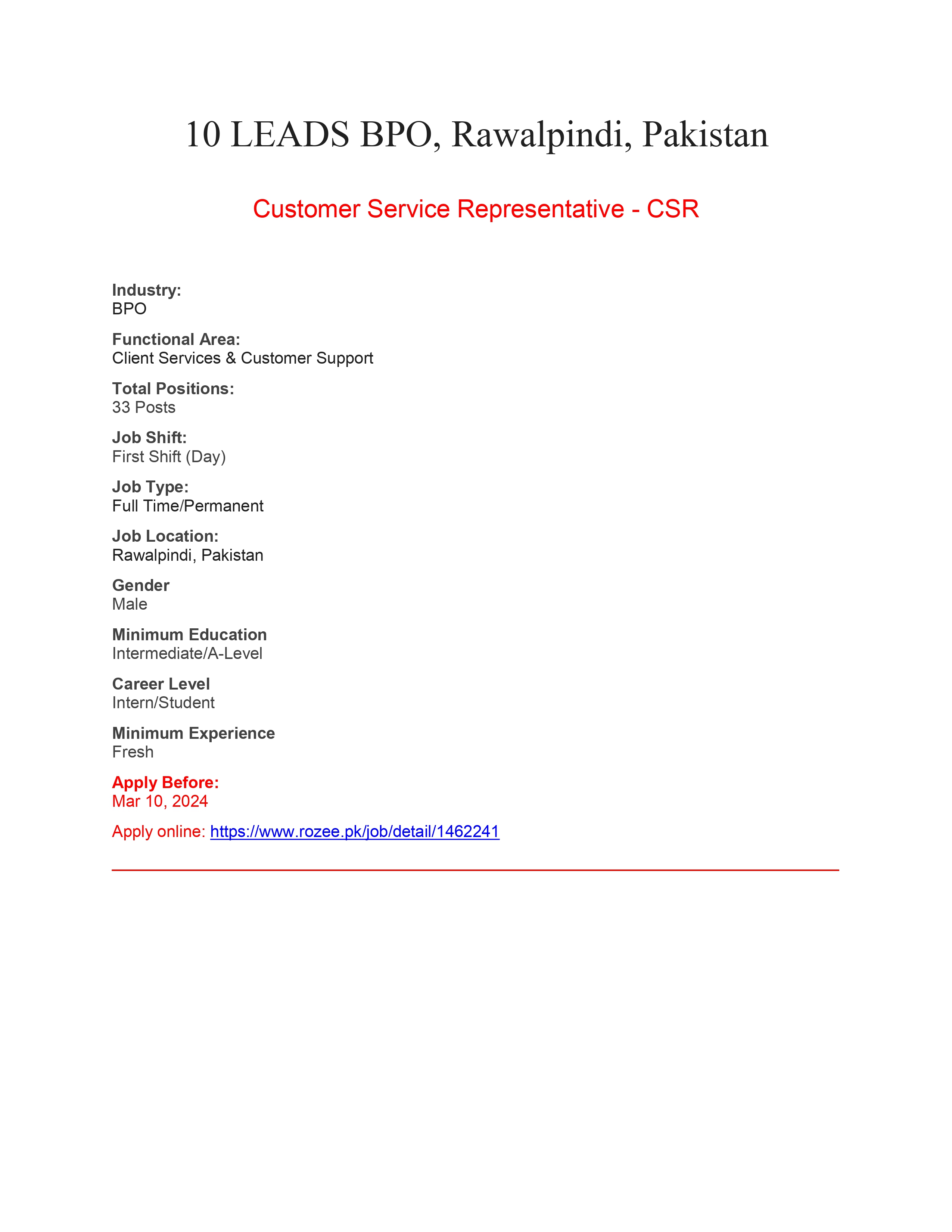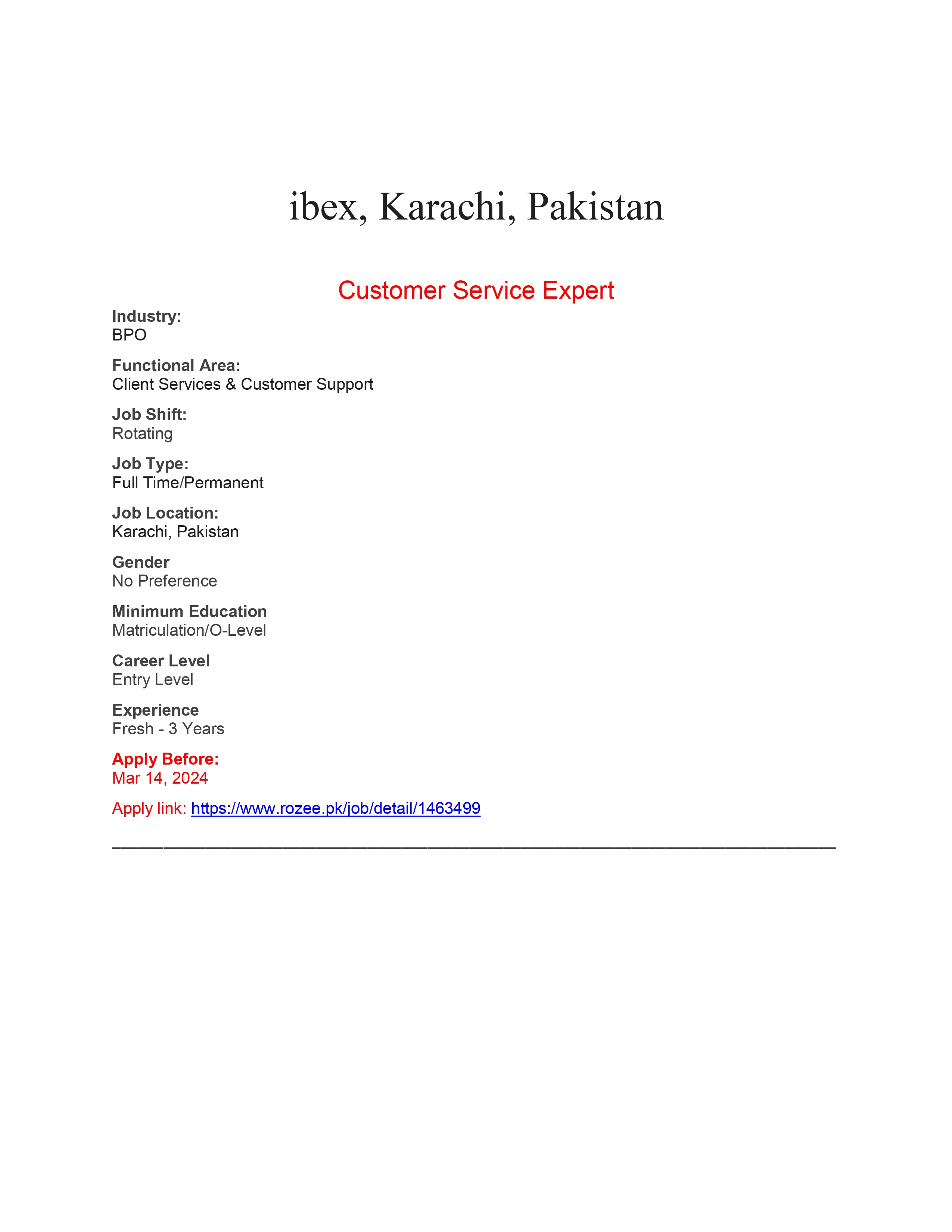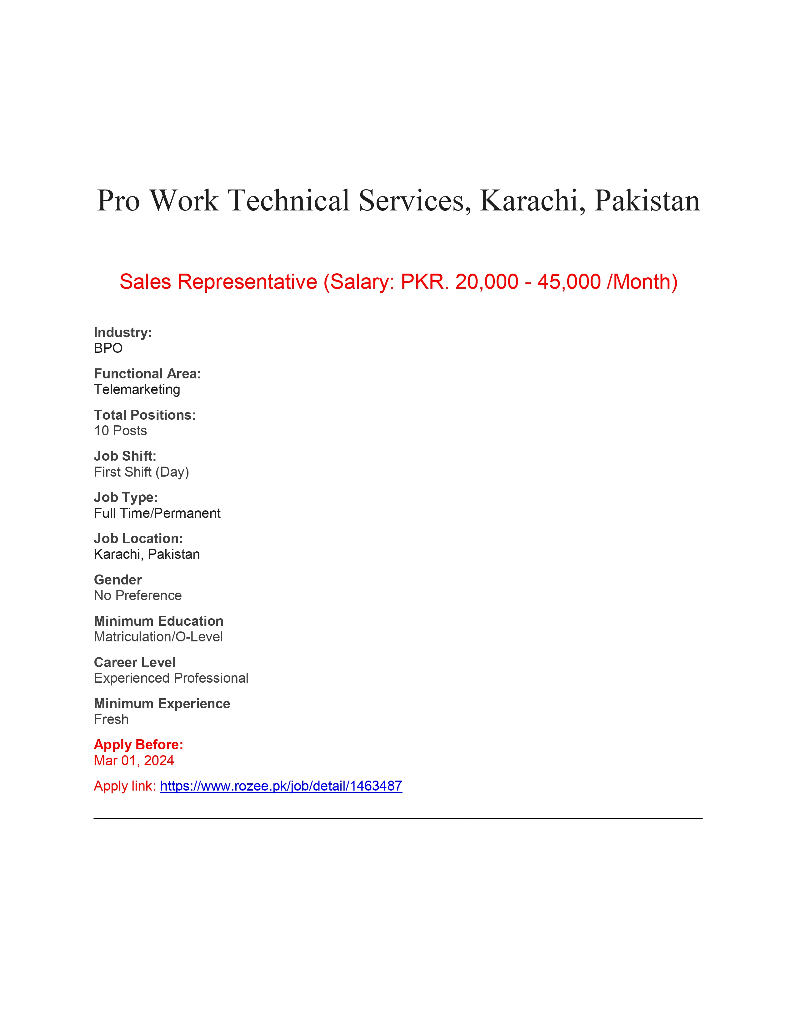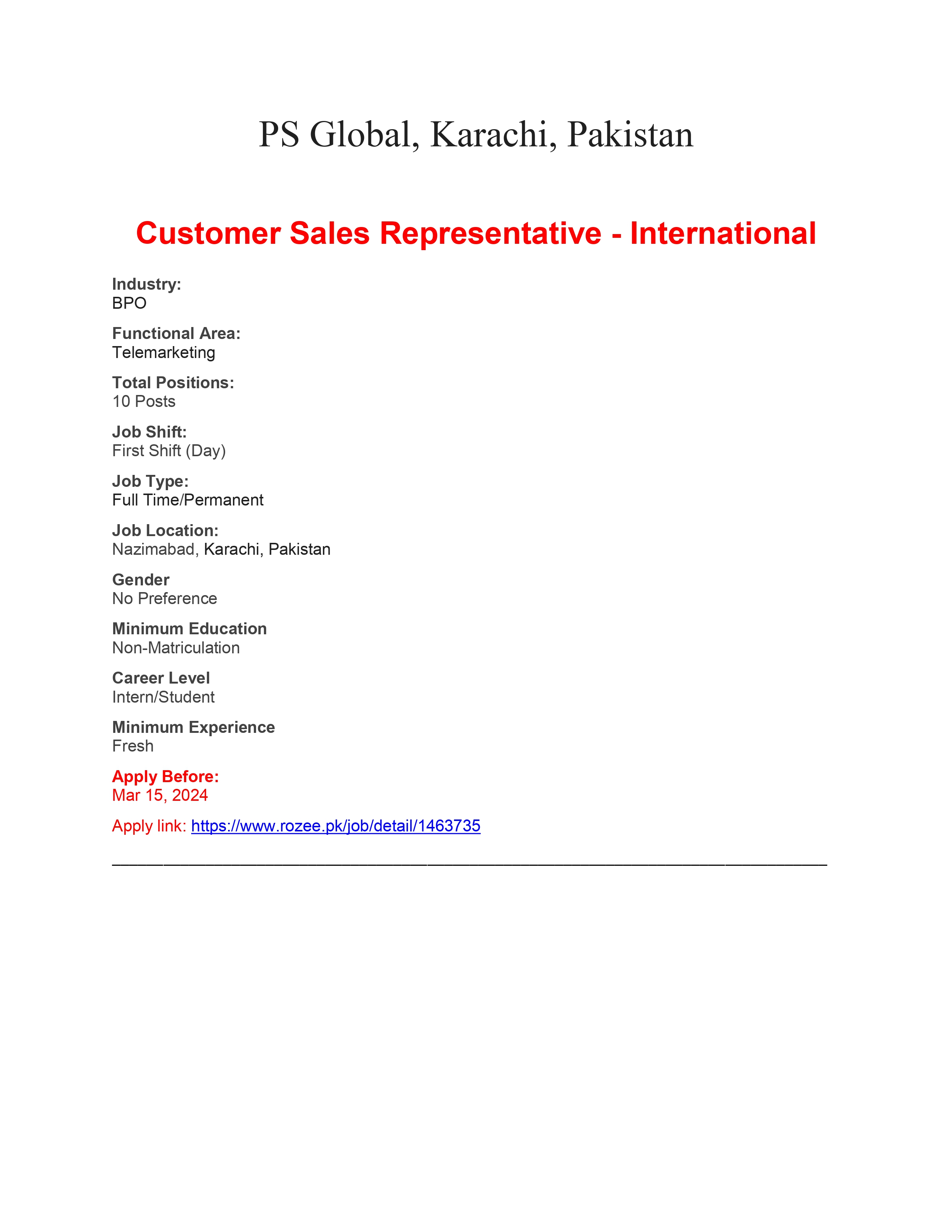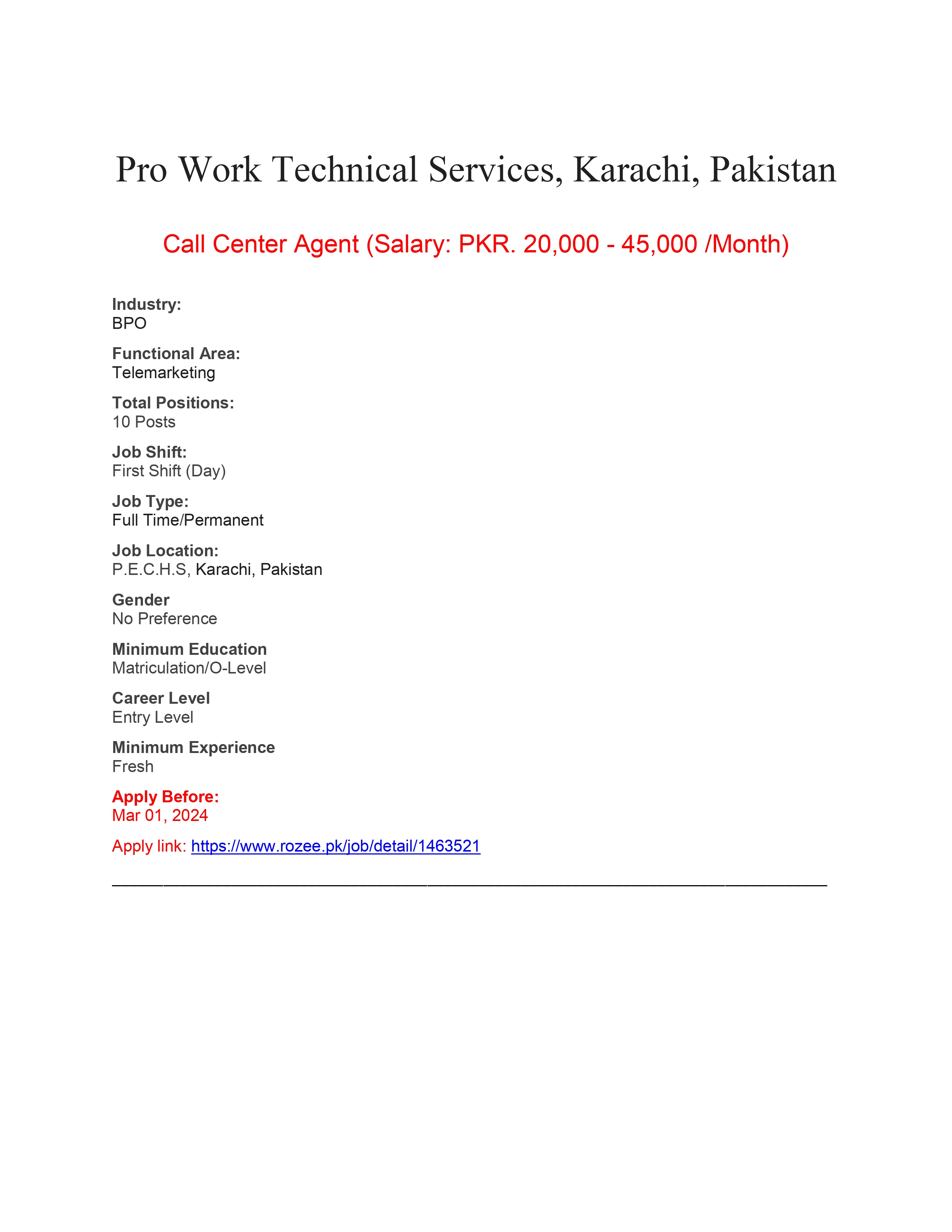 Interested Candidates should apply through Rozee.pk .