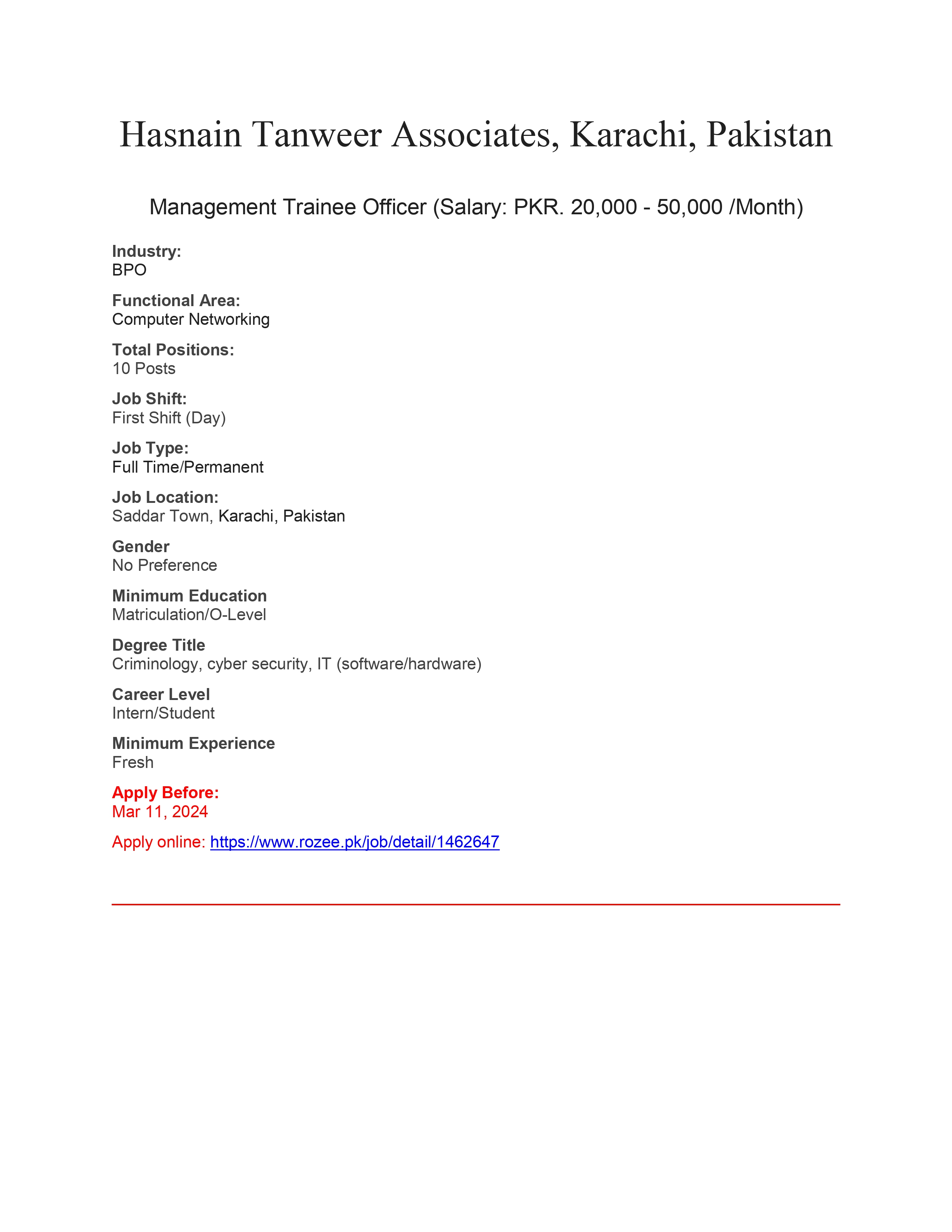 اپلائی کرنے کی آخری تاریخ: