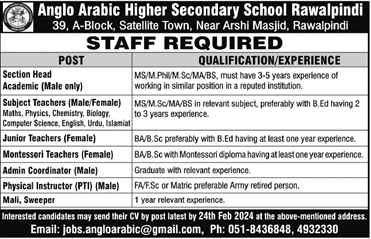 Anglo Arabic Higher Sec. School, 39, A-Block, Satellite Town, Near Arshi Masjid, Rawalpindi.