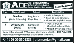 Apply online via email / WhatsApp given below latest by 24th Feb, 2024, Preference will be given to local & experienced candidates.