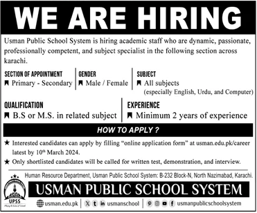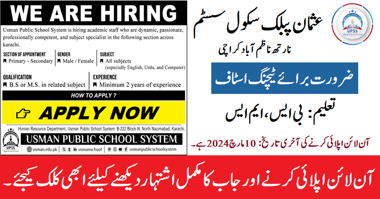 Usman Public School System, Karachi (Apply Now)
