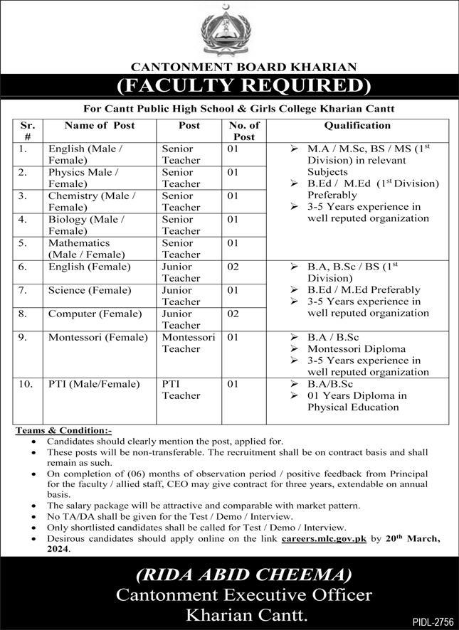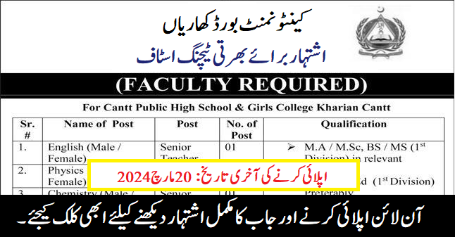 Cantonment Board Kharian Cantt (Apply Now)