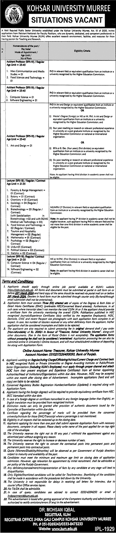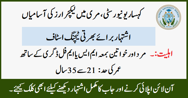 Kohsar University Murree (Lecturers Job 2024)