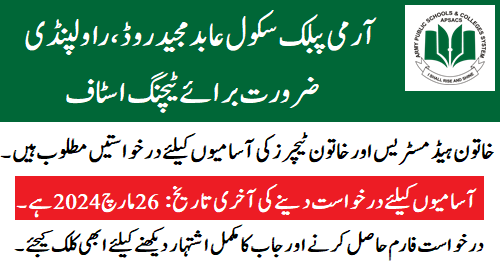 Army Public School Abid Majeed Road RWP (Teaching Jobs)