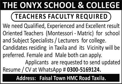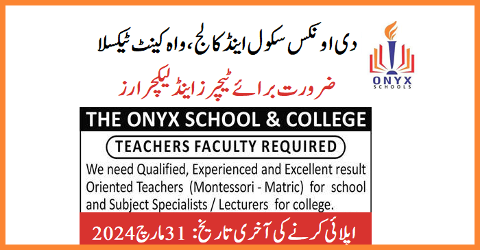The Onyx Schools Taxila (Teaching Staff Required)