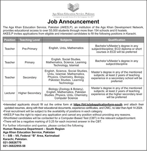 Aga Khan Education Service, Karachi (Latest Jobs April 2024) Apply Now