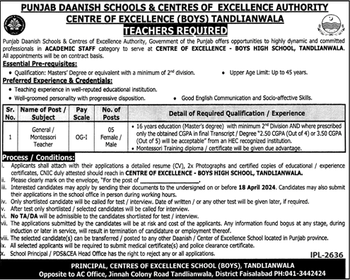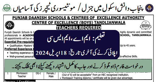 Punjab Daanish School (Montessori Teachers Jobs April 2024)