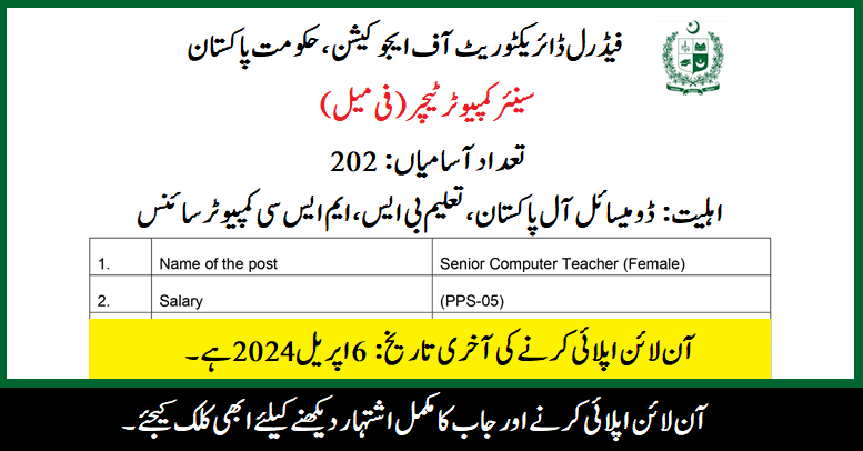 Federal Directorate of Education (Computer Teacher Jobs April 2024)