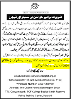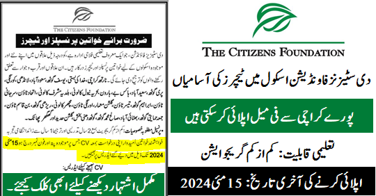 The Citizens Foundation School, Karachi. (Female Teachers Job) Apply Now