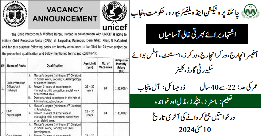 Child Protection and Welfare Bureau Punjab (Latest Jobs May 2024)