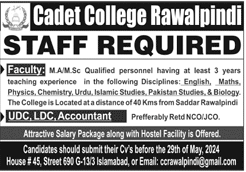 Cadet College Rawalpindi (Teachers Job May 2024)