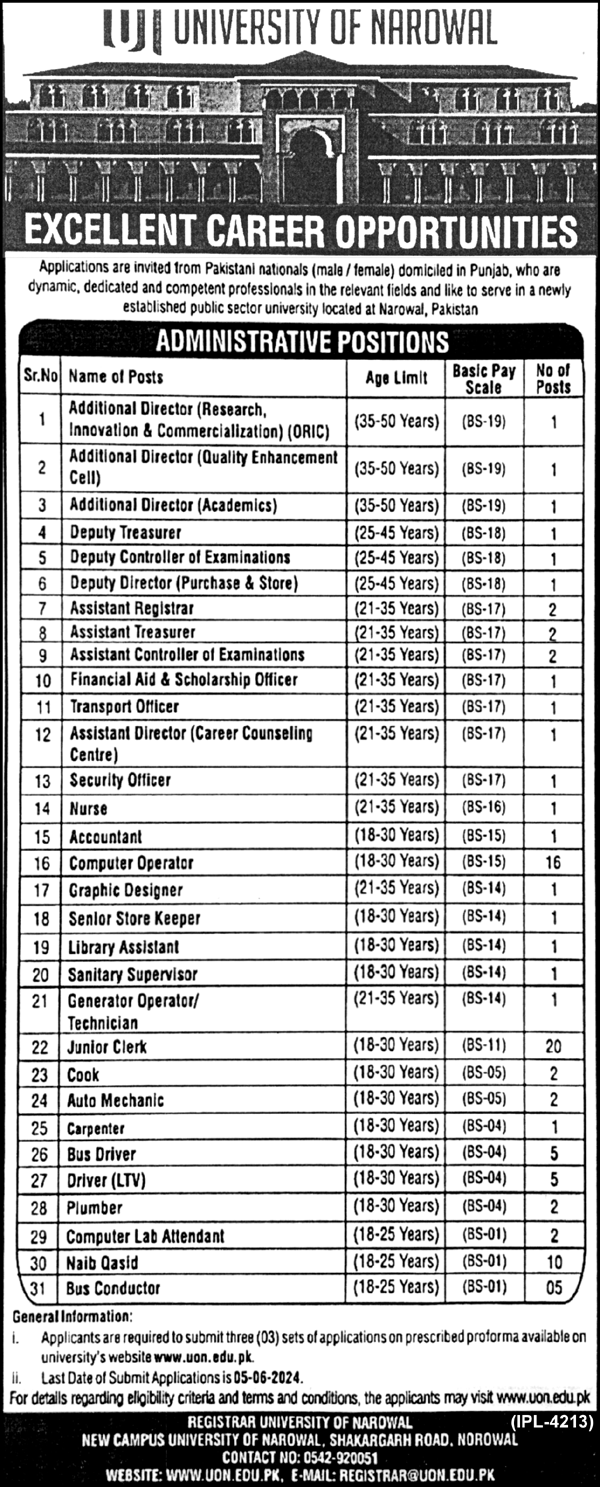 University of Narowal (Latest Job May 2024)