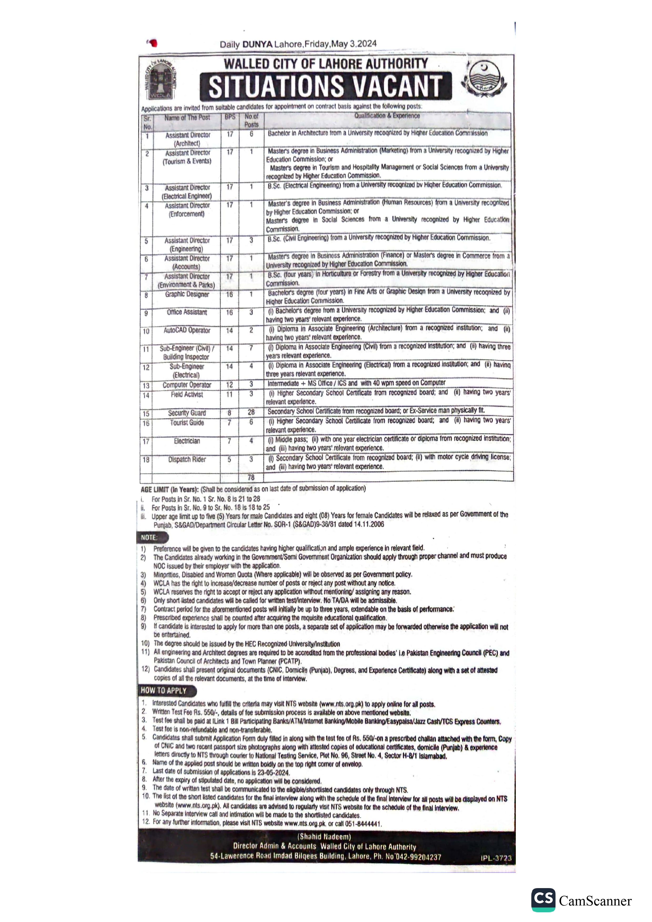 Walled City Lahore Authority (Latest Jobs May 2024)