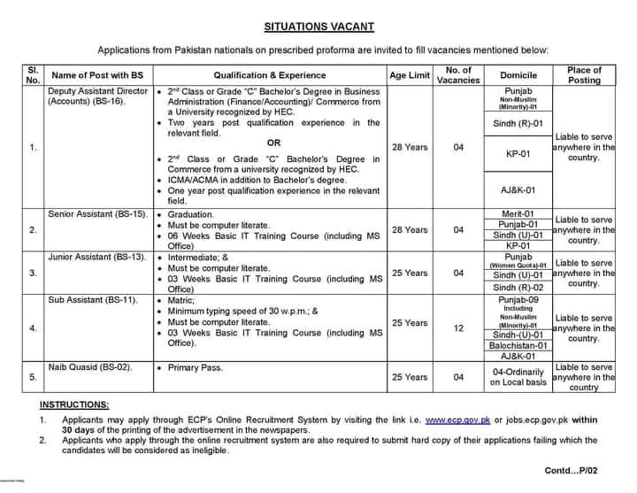 Election Commission of Pakistan (ECP) Latest Jobs May 2024