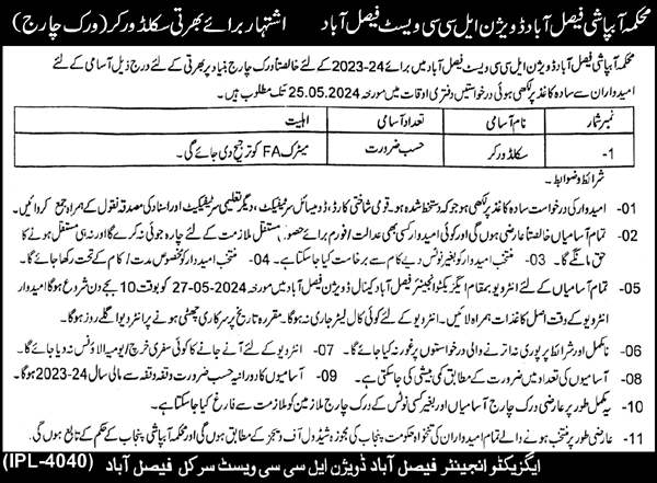 Faisalabad Division LCC West Irrigation Department (Latest Jobs May 2024)