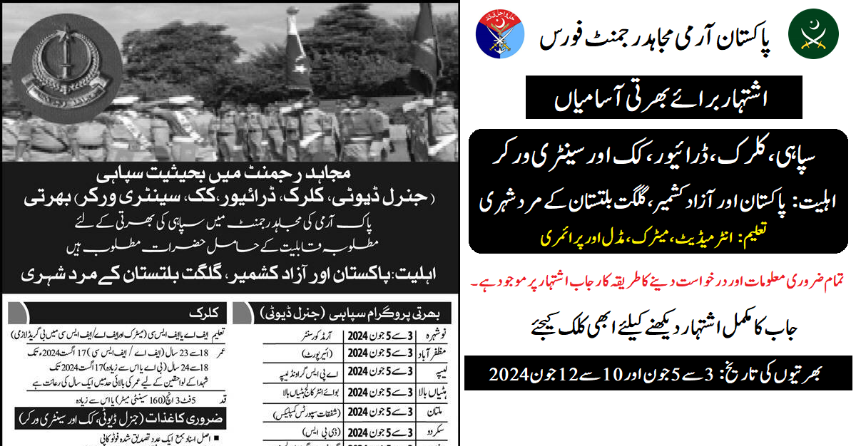 Pakistan Army Mujahid Force (Latest Jobs May 2024)