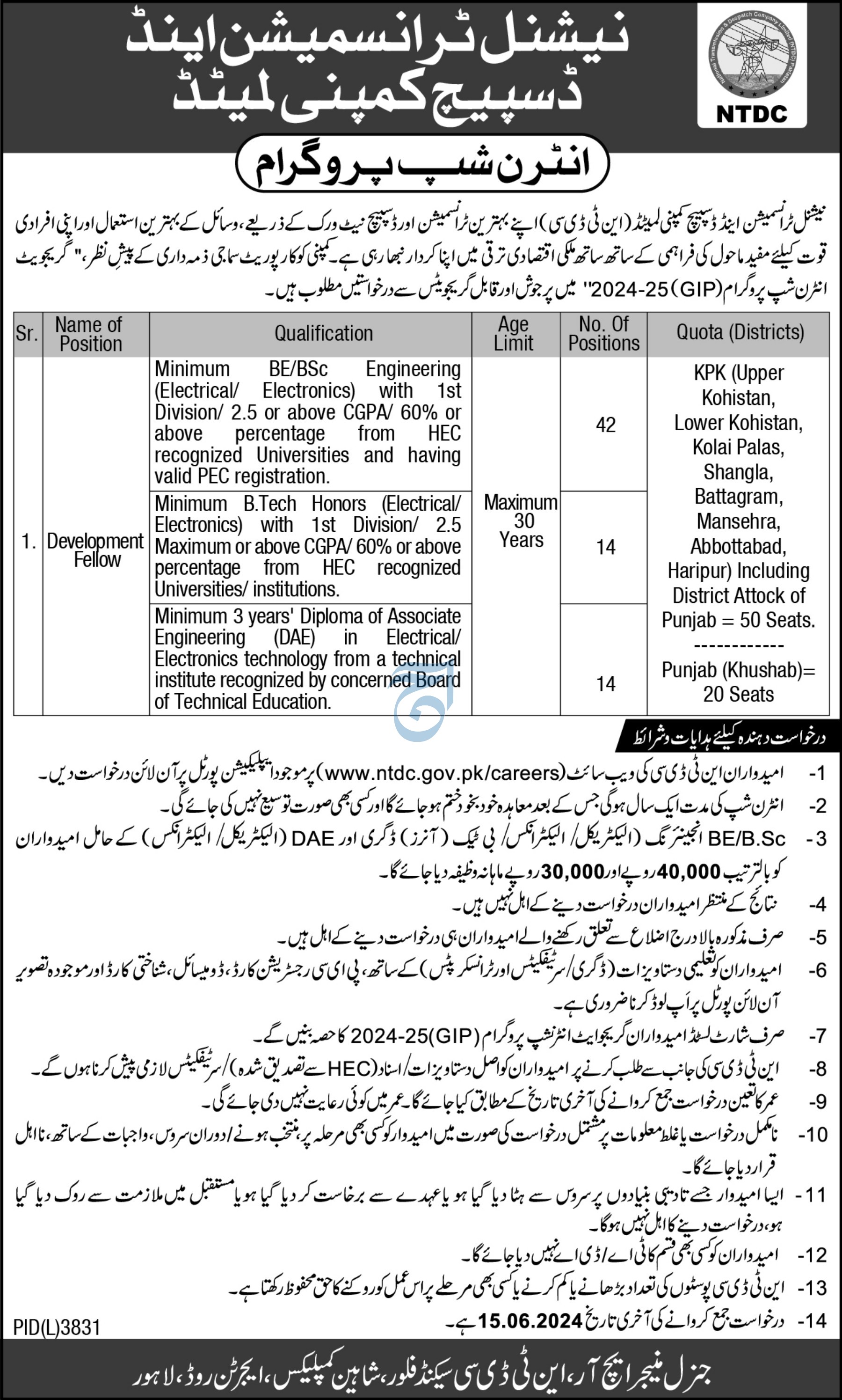 NTDC SUMMER INTERNSHIP PROGRAM (LATEST JUNE 2024)