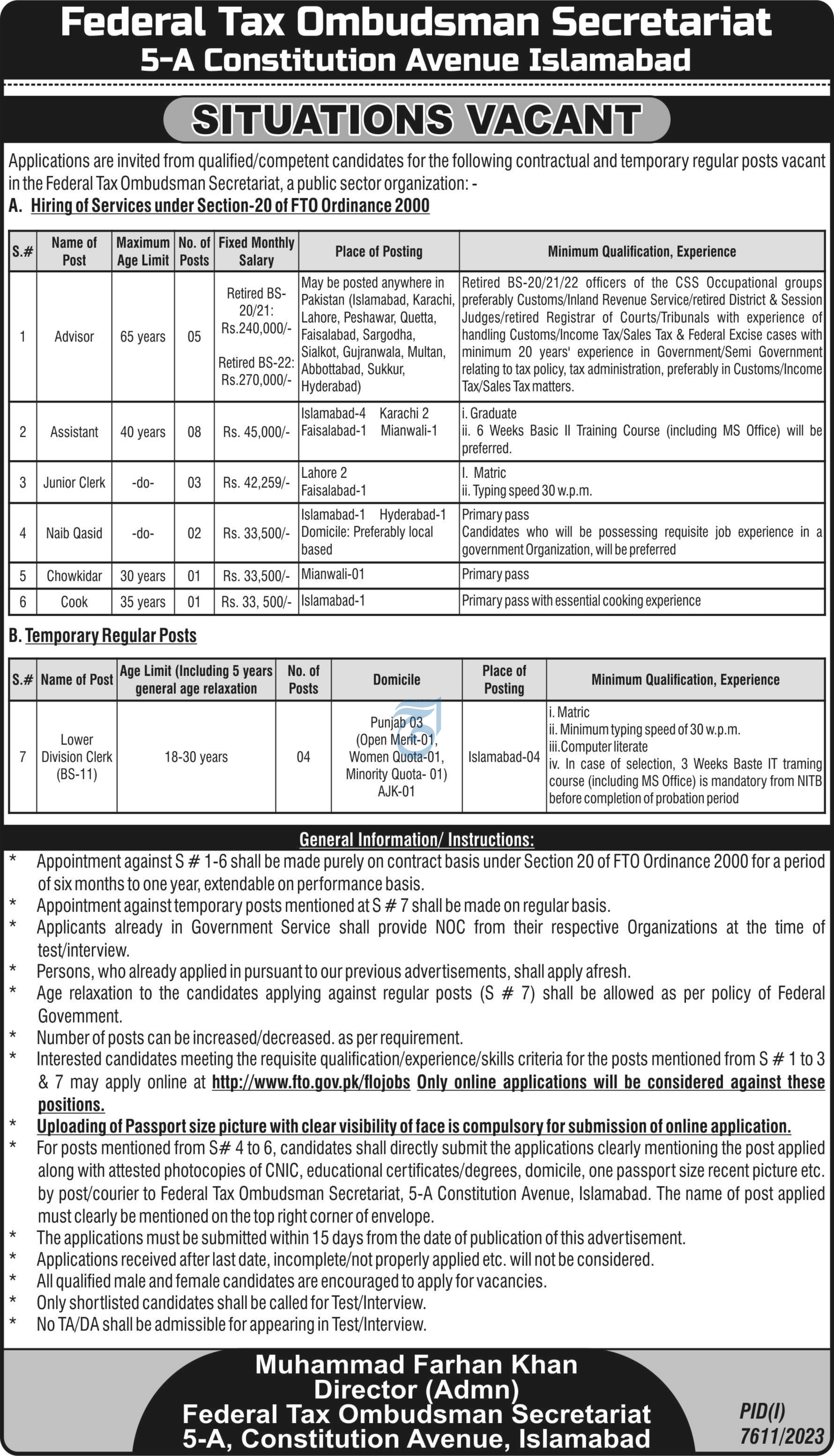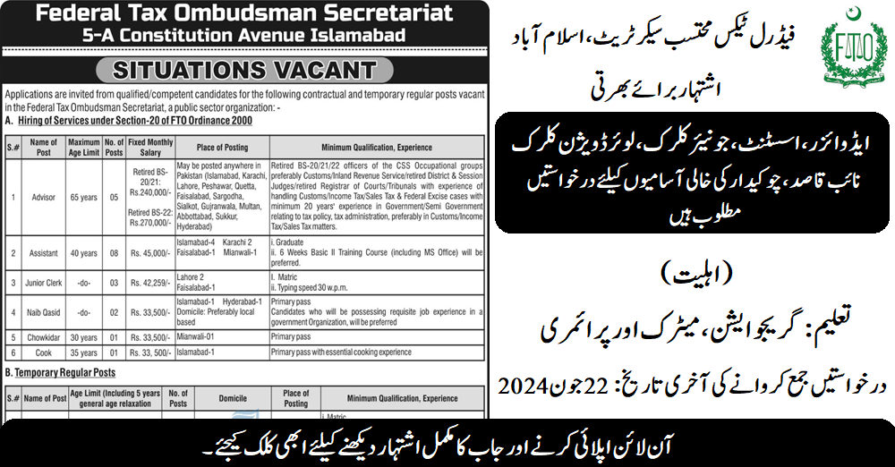 Federal Tax Ombudsman (FTO) Latest Jobs June 2024