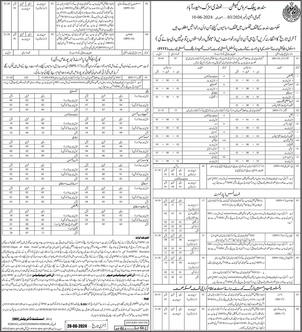 Sindh Public Service Commission (Latest Jobs June 2024)