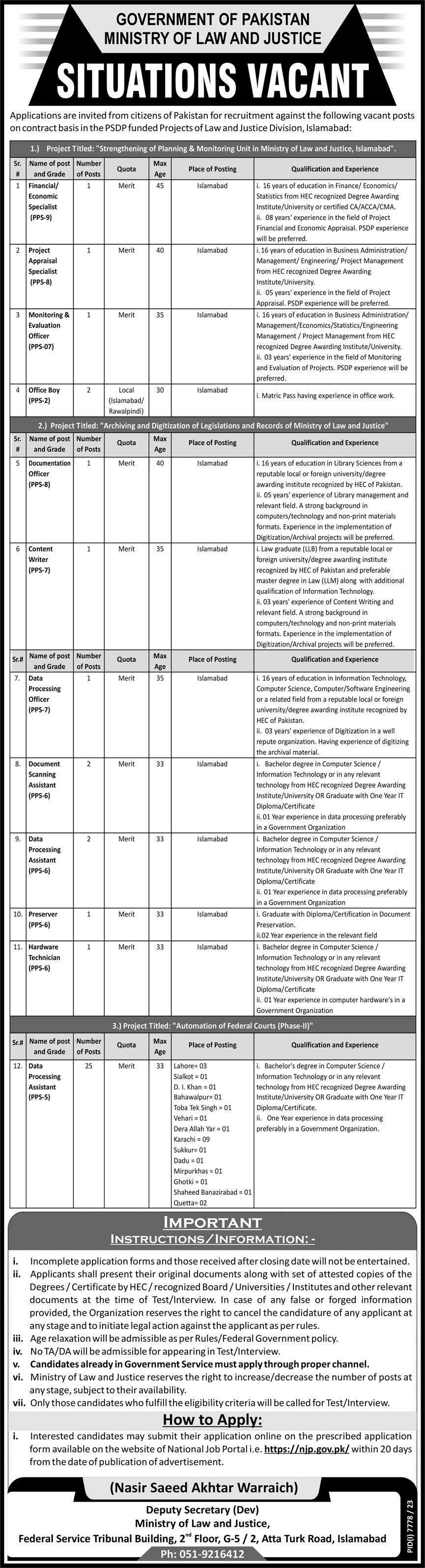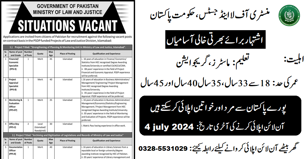 Ministry of Law and Justice (Latest Jobs June 2024)