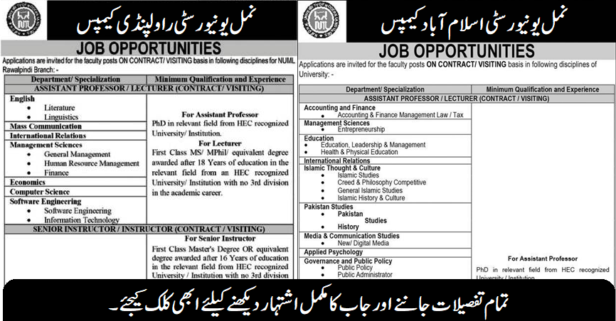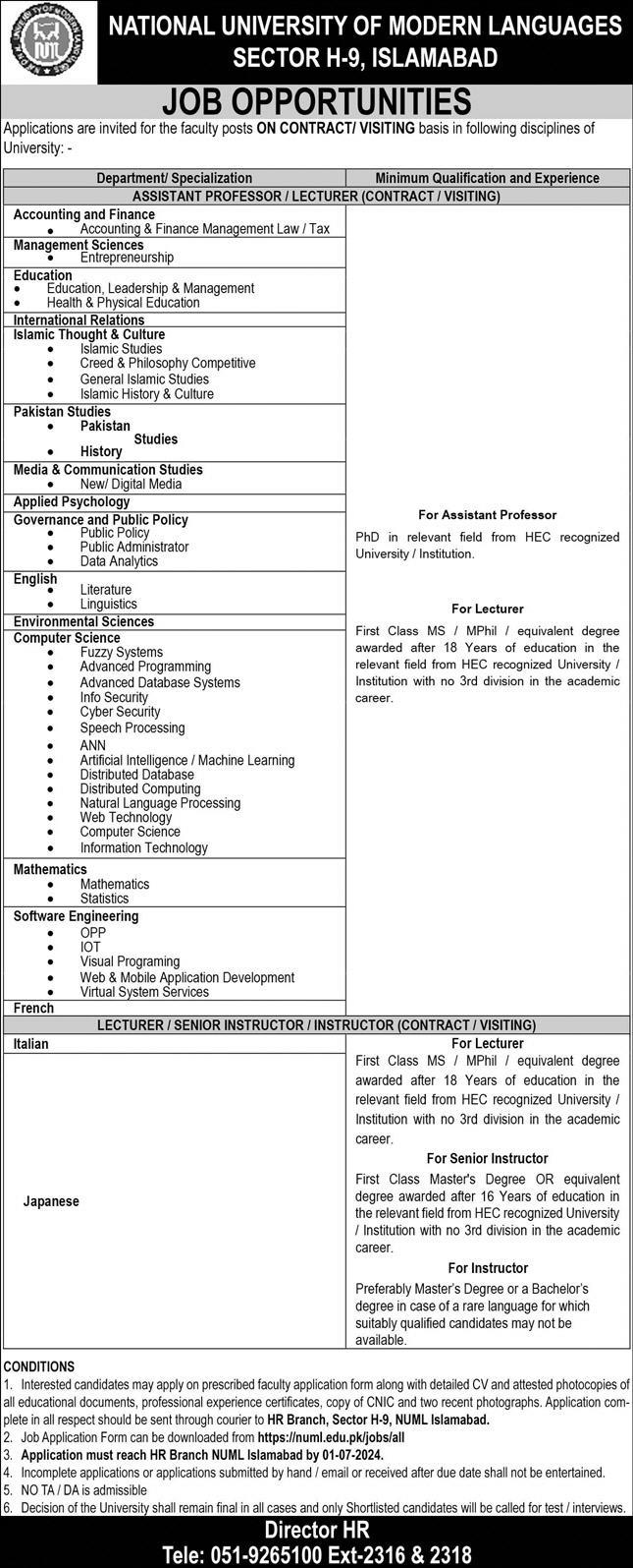 National University of Modern Languages (NUML) Lecturers Jobs Latest June 2024