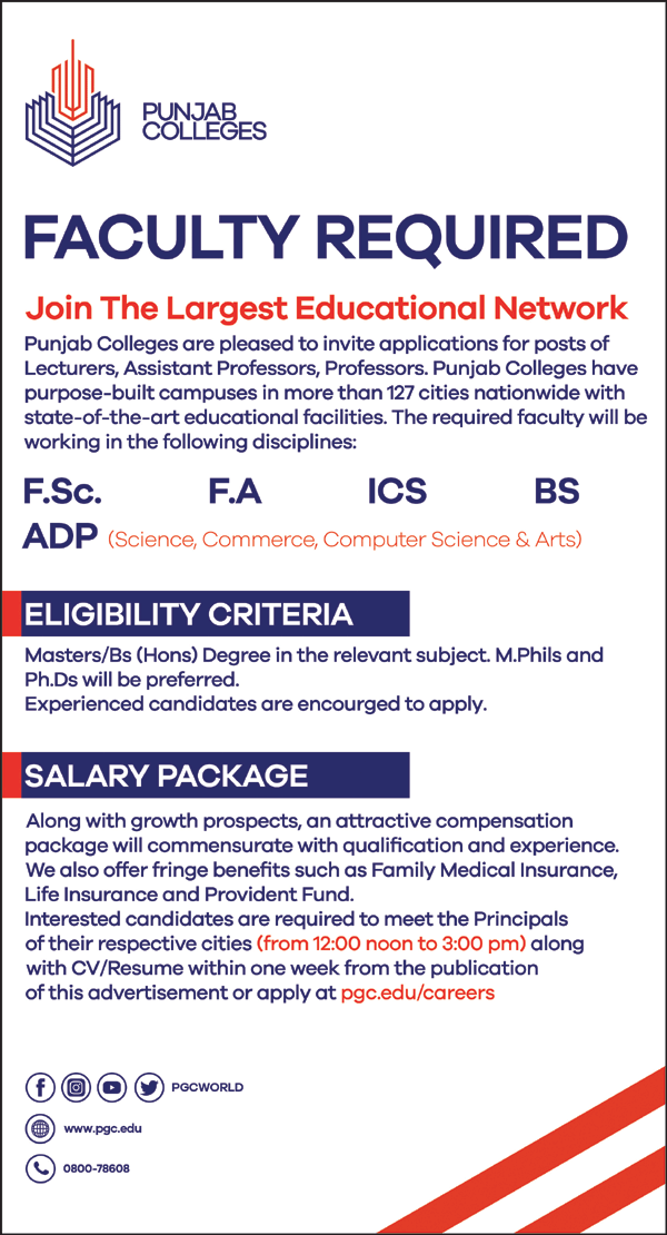 Punjab Group of Colleges (Lecturers Jobs All Punjab Latest July 2024)