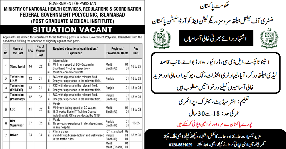 Ministry of National Health Services, Regulations & Coordination (Latest Jobs July 2024)