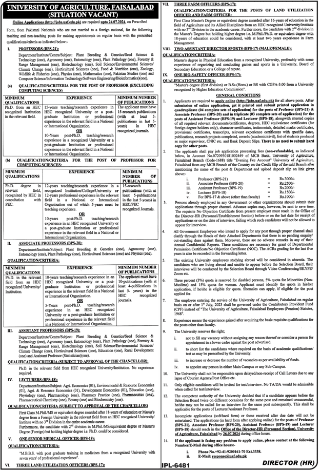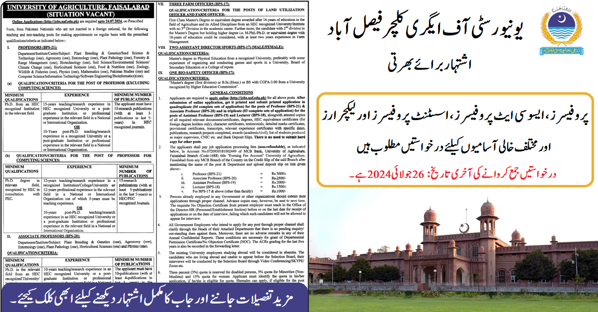 University of Agriculture Faisalabad (Latest Jobs July 2024)