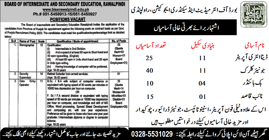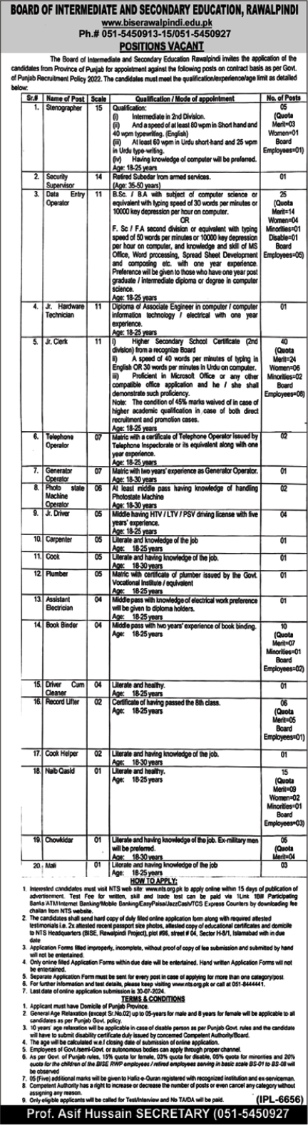 BISE Rawalpindi (Latest Jobs July 2024)