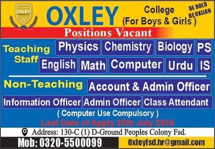 OXLEY College Faisalabad (Teaching & Non-Staff Required)