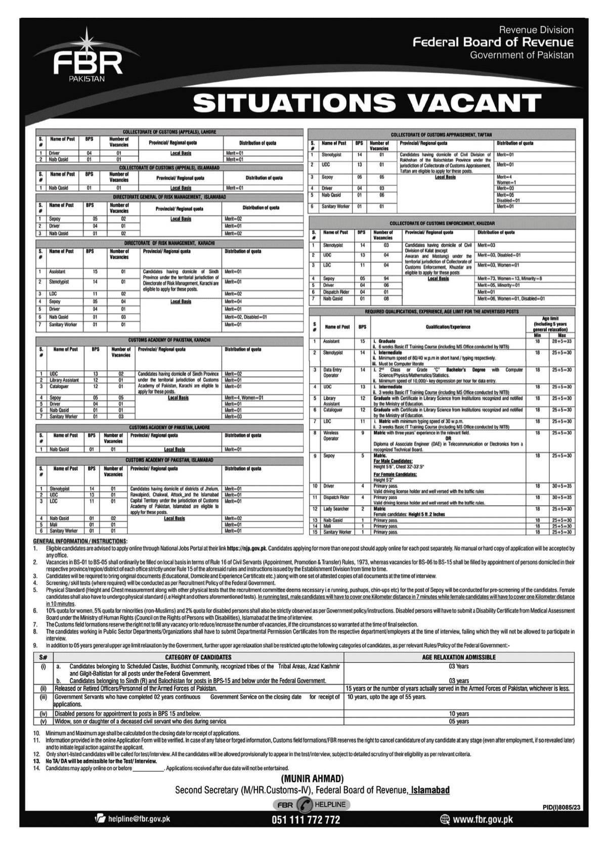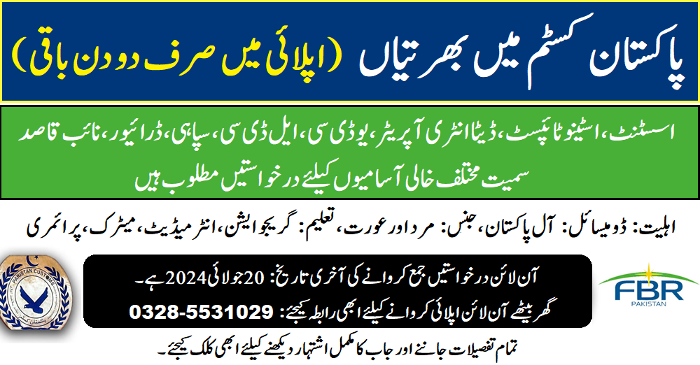 Pakistan Customs (Latest Jobs 2024)