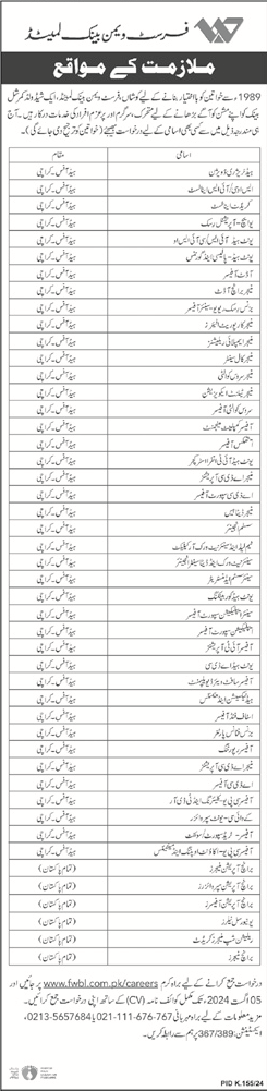 First Women Bank Ltd Pakistan (Latest Jobs Male and Female)