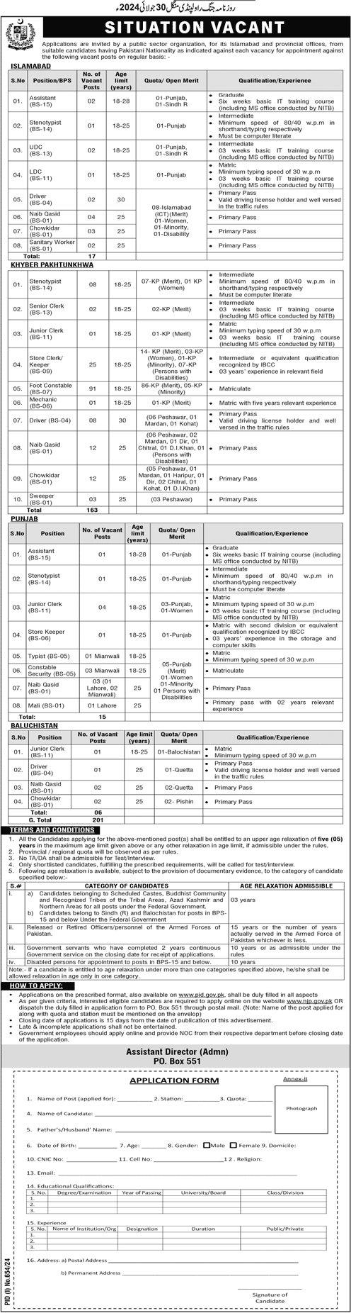 Public Sector Organization PO Box 551 Islamabad (Latest Jobs August 2024)