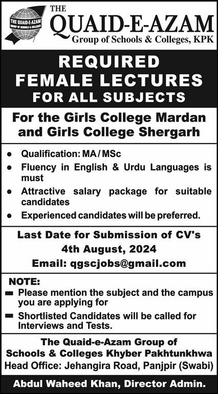 The Quaid e Azam Group of Schools & Colleges (Staff Required)