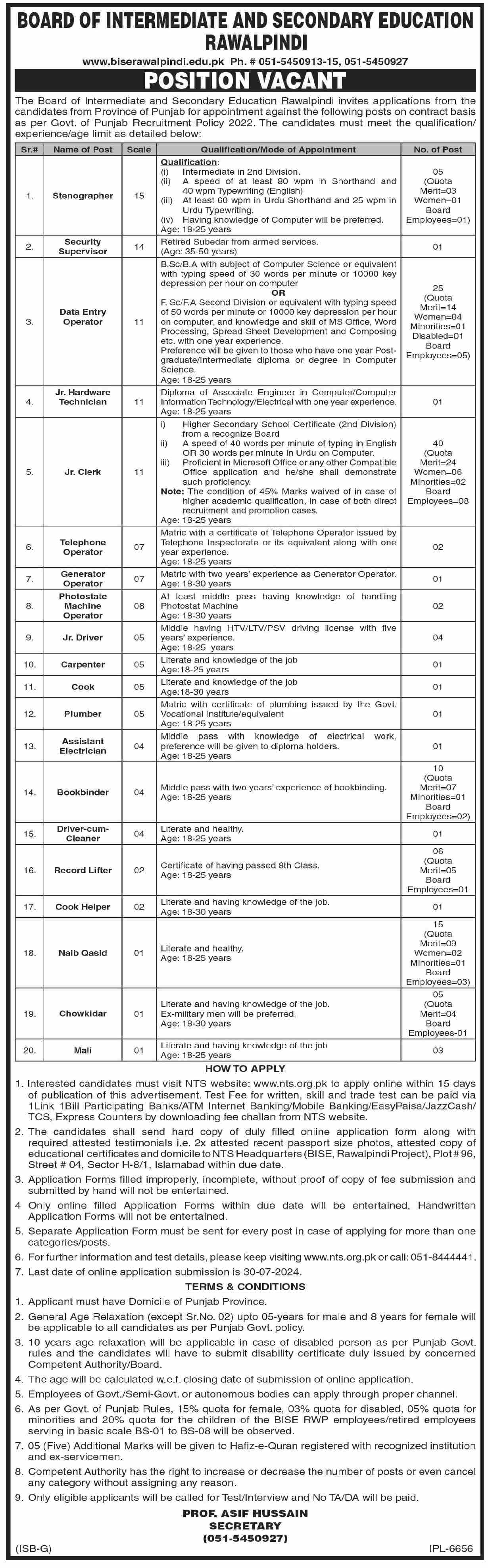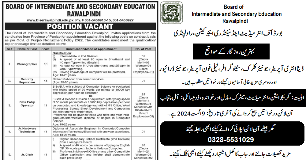 BISE Rawalpindi (Latest Jobs August 2024)