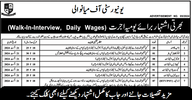 University of Mianwali (Grade 4 Positions August 2024)